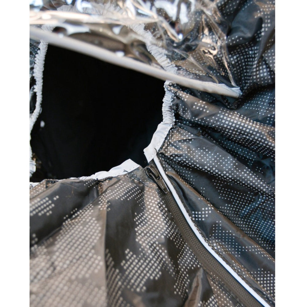 Med en smart designad öppning framtill och sidodragkedja, förenklas åtkomst och ventilation utan att kompromissa med skyddet. Easygrow Camo Regnskydd Twin är inte bara praktiskt, det är också säkert. Reflexmönstret ökar synligheten avsevärt i mörker, vilket gör detta regnskydd till ett utmärkt val för alla förhållanden.