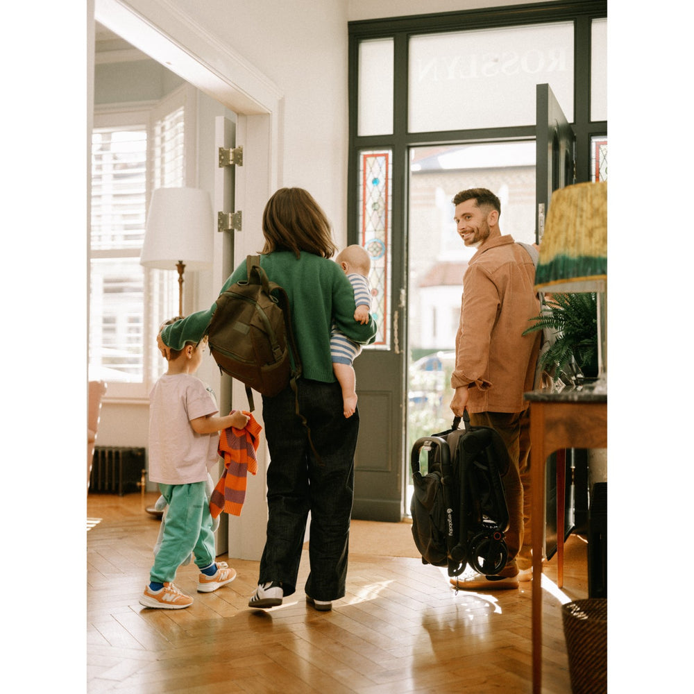 • Den bekväma, stuvade barnvagnen som packar stora äventyr i små utrymmen för resor nära och fjärran.