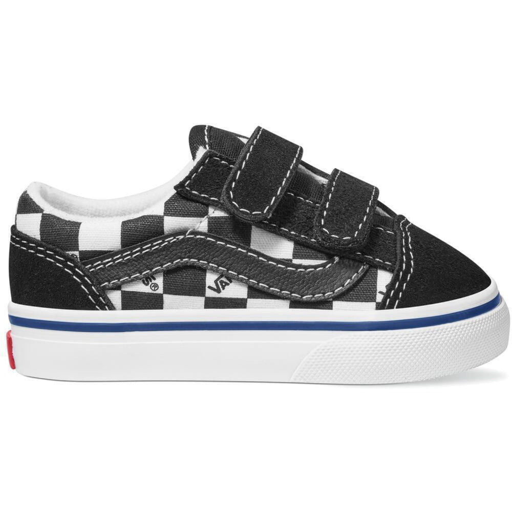 Ta dina första steg i stil med VANS Check/White Old Skool V Logo sneakers! Dessa trendiga skor, med sin klassiska rutiga design i svart och vitt, kombinerar stil med komfort. Tillverkade med hållbart material, erbjuder de både flexibilitet och support för små fötter. Den justerbara kardborrestängningen förenklar på- och avtagning och säkerställer en perfekt passform. Dessutom är de lätta att sköta om; en enkel avtorkning gör dem rena igen. Idealiska för allt från lek i parken till dagis, dessa sneakers ger både funktion och mode. Material: Läder