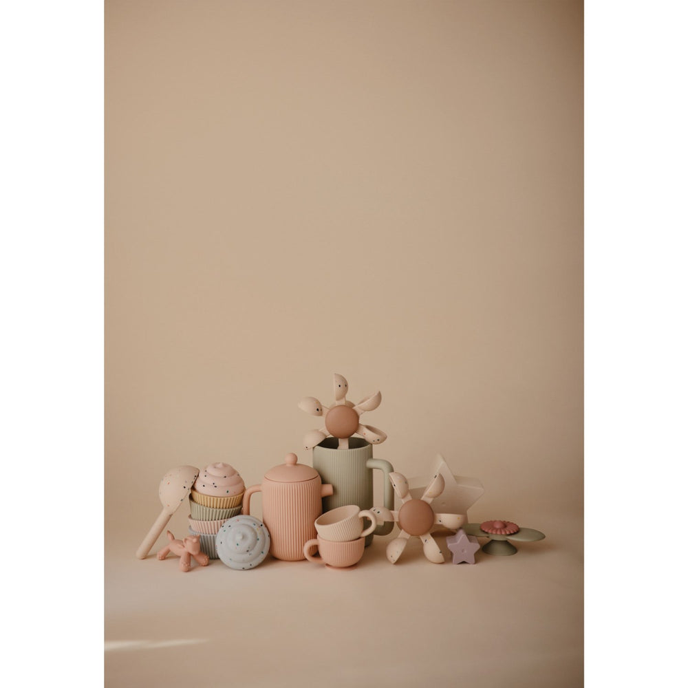 Mushie Water Wheel Bath Toy är den perfekta badleksaken för att engagera och roa ditt barn. Tillverkad av 100% livsmedelsgodkänd silikon och robust ABS-plast, erbjuder denna leksak inte bara skoj utan också säkerhet under badtiden. Dess unika vattenhjul och färgglada rattform stimulerar barnets sensoriska förmågor och hand-öga koordination. Måttet på leksaken är 13,97 x 13,97 x 4,4 cm, vilket gör den lämplig för små händer att hantera. Till tack vare dess säkra sugbas kan den fästas på släta ytor som badkarsväggar, barnstolar eller skåpdörrar, vilket gör den ytterst praktisk och mångsidig för användning både i och utanför hemmet. Leksaken är CE-märkt, vilket bekräftar att den uppfyller EU:s säkerhetskrav. Underhållet är enkelt; den kan snabbt tvättas med varmt tvålvatten och lufttorkas, vilket garanterar hygien och långvarig användning. Med sitt engagerande design och multifunktionella användning är Mushie Water Wheel Bath Toy en idealisk leksak för att berika ditt barns lekstunder och stimulera deras utveckling på ett säkert och underhållande sätt.