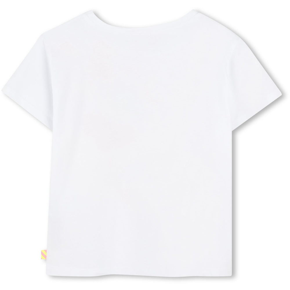 Skäm bort din lilla prinsessa med denna charmiga Billieblush vit t-shirt! Den här underbara t-shirten är tillverkad av mjukt jerseytyg för optimal komfort och har korta ärmar och en klassisk rund halsringning. Framsidan är prydd med en iögonfallande paljettillustration som ger en touch av glamour. Perfekt för allt från lekträffar till familjeutflykter!