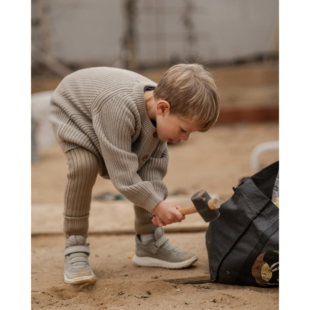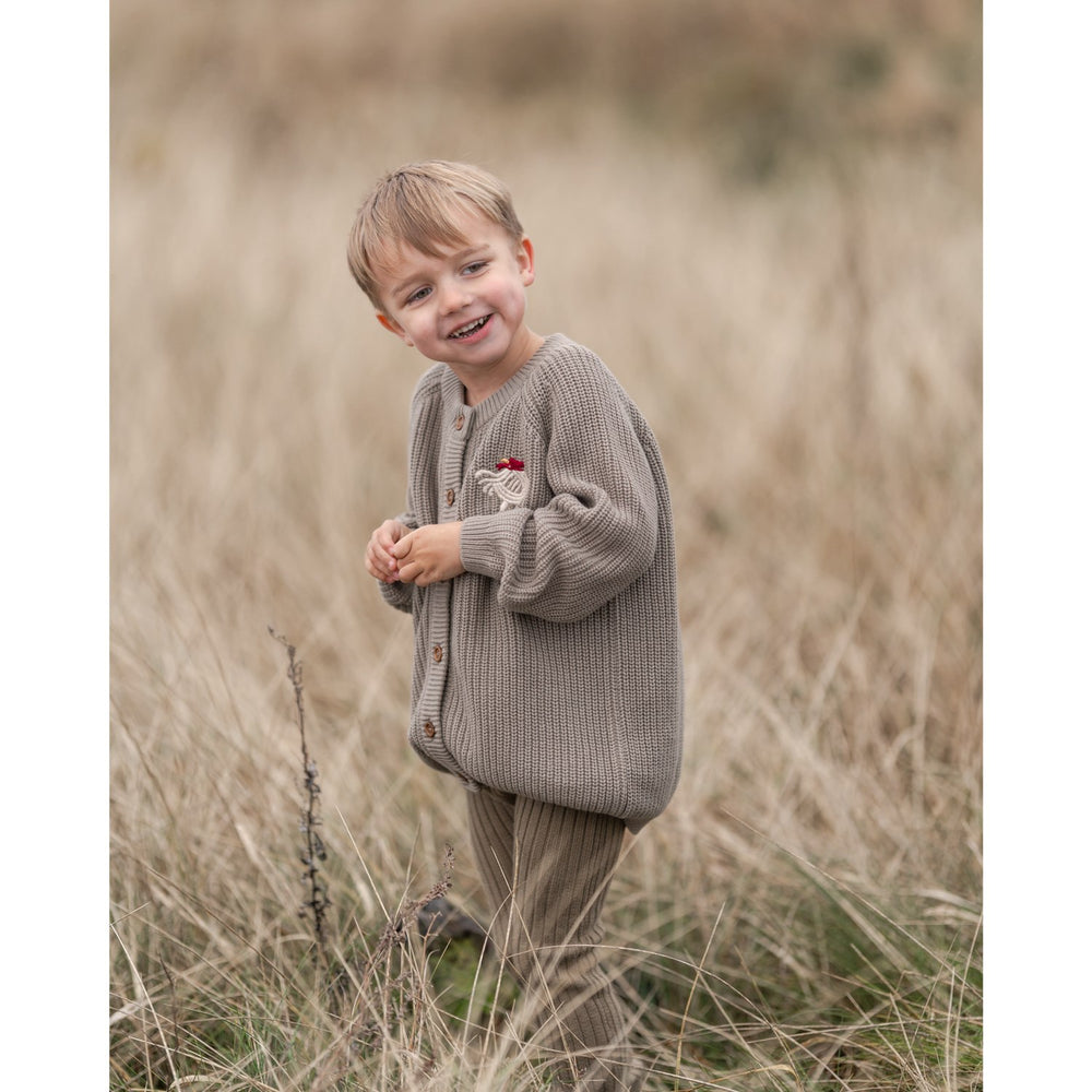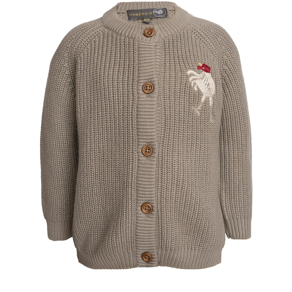 Upplev den mjuka känslan av Hanevild Caribou Kaj Cardigan, perfekt för kyliga dagar. Denna stilrena kofta är tillverkad av 80 % ekologisk bomull och 20 % merinoull, vilket garanterar både komfort och hållbarhet. Designen inkluderar eleganta mörkträknappar och en unik, handbroderad tupp på bröstet. I en klassisk grå nyans är den lätt att matcha med andra plagg. Passformen är idealisk för lekfulla barn, och skötselråden är enkla: använd ulltvätt, blek inte och lägg platt vid torkning. En perfekt kombination av stil och funktionalitet som håller ditt barn varmt och snyggt.