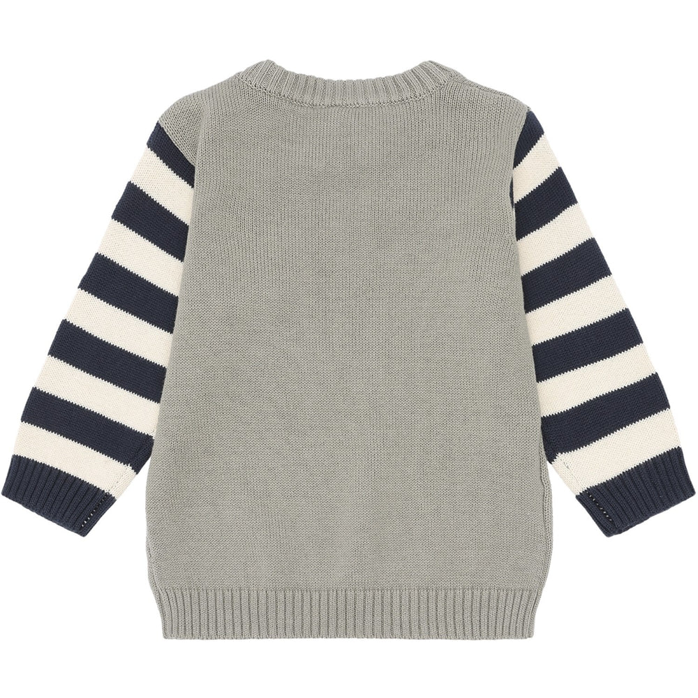 Upplev komforten och stilen med Hust & Claire Seagrass Pilou Pullover. Denna charmiga stickade tröja är framställd av 100% ekologisk bomull, vilket gör den både mjuk och hållbar. Designen inkluderar eleganta randiga ärmar och ett lekfullt skeppsmotiv på framsidan, perfekt för små upptäckare. Praktisk knappstängning på vänster axel underlättar påklädningen. Ett hållbart och stilfullt val för ditt barns garderob!