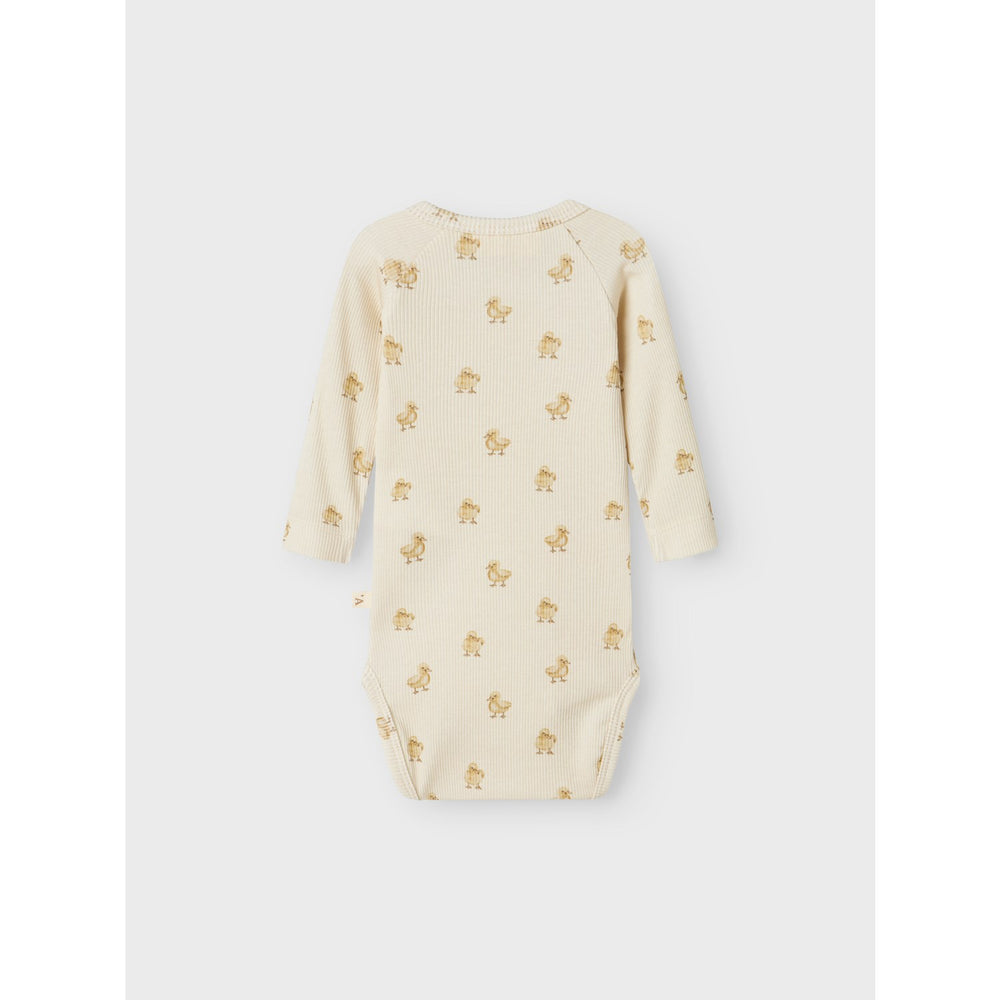 Den har en praktisk V-ringad hals, långa ärmar och knäppning med tryckknappar som underlättar påklädning och blöjbyte. Denna body pryds av ett charmigt tryck som upprepas över hela ytan, läggande till en lekfull touch till ditt barns garderob. Dess slitstarka material och enkla skötselanvisningar säkerställer att bodysuiten håller länge, även efter flera tvättar.