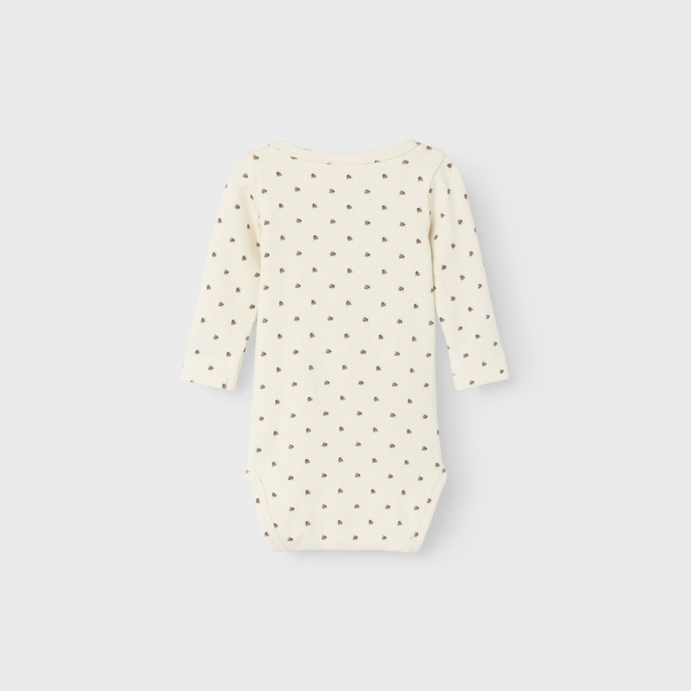 Bodysuiten är mjukgul i färgen med ett lekfullt nyckelpigemönster som ger en charmig touch till din lilla äventyrare. Dessutom är den i storlek och passform skräddarsydd för att ge optimal rörelsefrihet, vilket gör den idealisk från lekstund till vilostund. Sömmarna och kanterna är särskilt utformade för att vara mjuka och icke-irriterande.