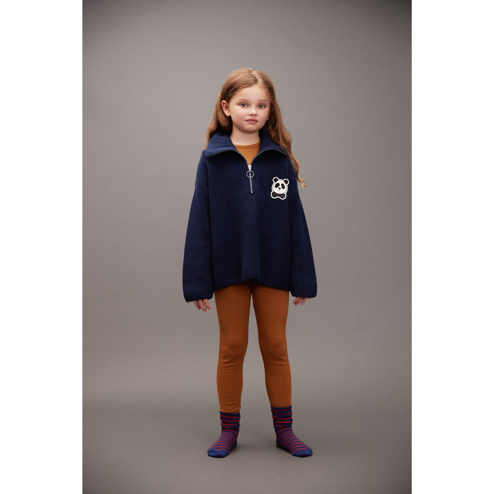 Mini Rodini Blue Panda Patch Chunky Stickad Half Zip Sweater