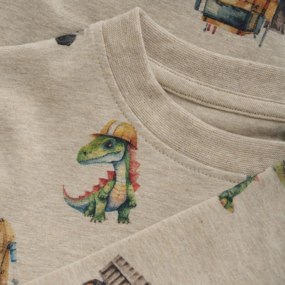 Designen är både modern och lekfull med ett iögonfallande all-over print som tillförlitligt håller sin färg och form tvätt efter tvätt. Dess neutrala beige färgton blandat med stilfulla mönster gör den lätt att kombinera med andra plagg i barnets garderob.