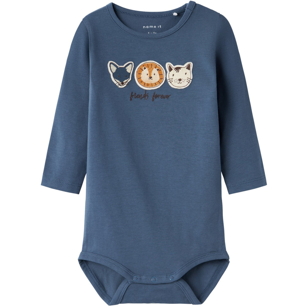 Bodyn har en klassisk rund halsringning och långa ärmar som passar utmärkt för all slags lek under olika årstider, vare sig som baslager under kalla månader eller som den är på en ljummen dag. För enkel på- och avklädning är plagget utrustat med en praktisk knäppning med tryckknapp vid grenen. Som en charmig finess har denna body också 3D-detaljer som ger en lekfull touch.