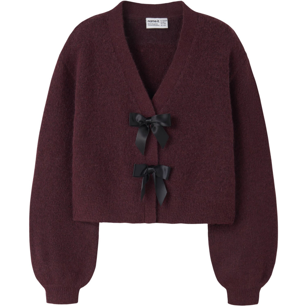 Vår Name It Burgundy Black Bow Nkfrina Ls Stickad Cardigan är mer än bara ett plagg; den är ett sätt för ditt barn att uttrycka sig och samtidigt vara bekväm och trendig. Perfekt för den lilla som vill vara lika stilig som bekväm!