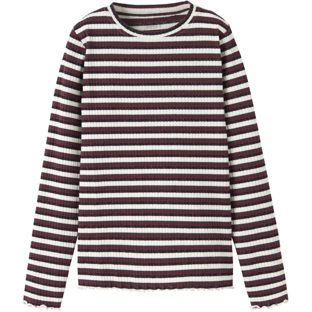 Name It Cloud Dancer Black+Burgundy Nkfvemma Glitter Ls Slim Topp
