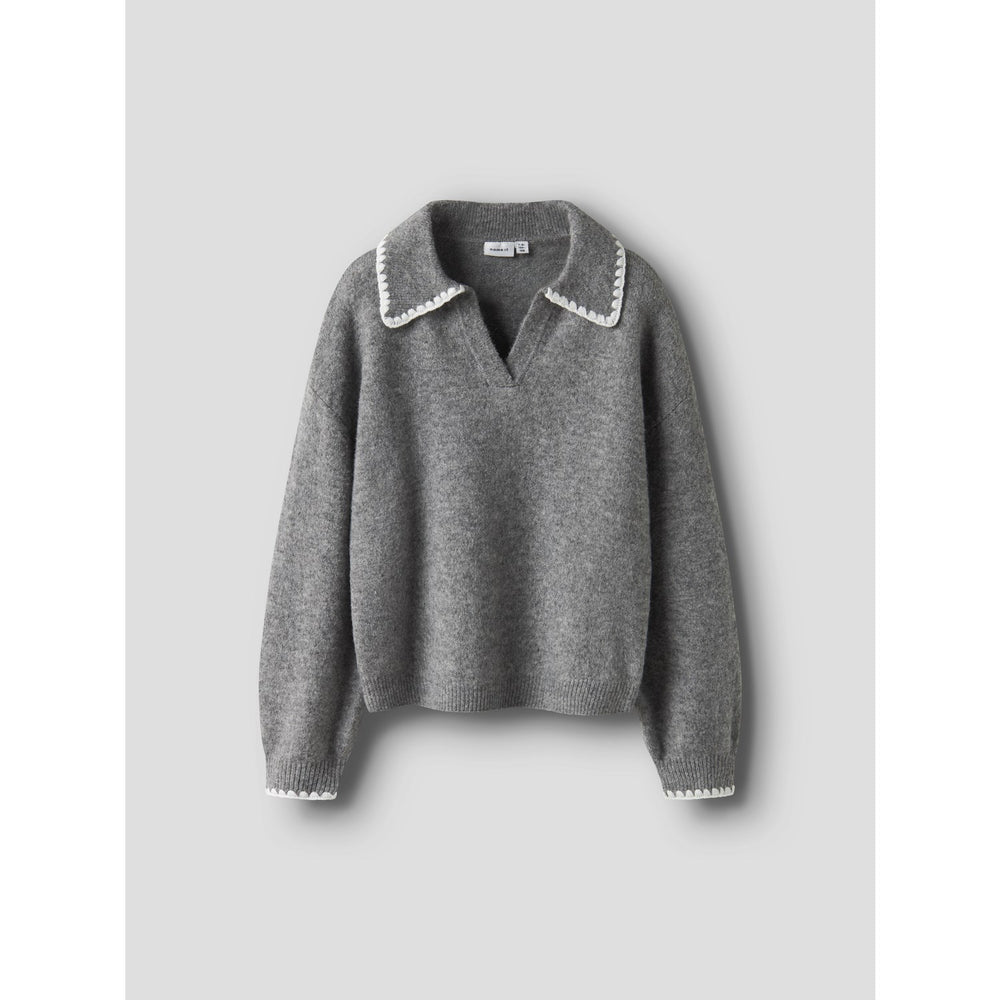 Name It Grey Melange Nkfrikasa Ls Stickad Pikétröja