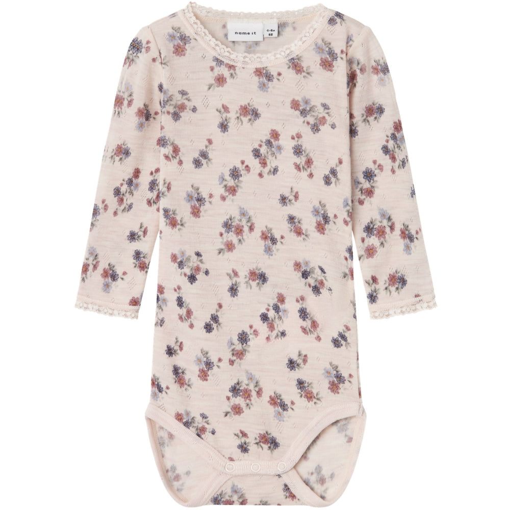 Introducera stilsäkerhet och bekvämlighet i din lilla skatts garderob med vår 'Name It Lilac Ash Wang Ull Needle Body Noos'. Denna bodysuit är skapad för att omfamna ditt barn med mjukhet och värme tack vare dess högkvalitativa ullmaterial. Dess unika needle drop-teknik framhäver ett härligt mönster som gör varje plagg unikt och ögonfallande.