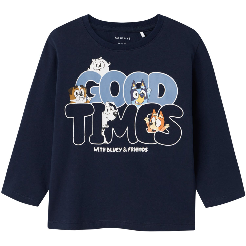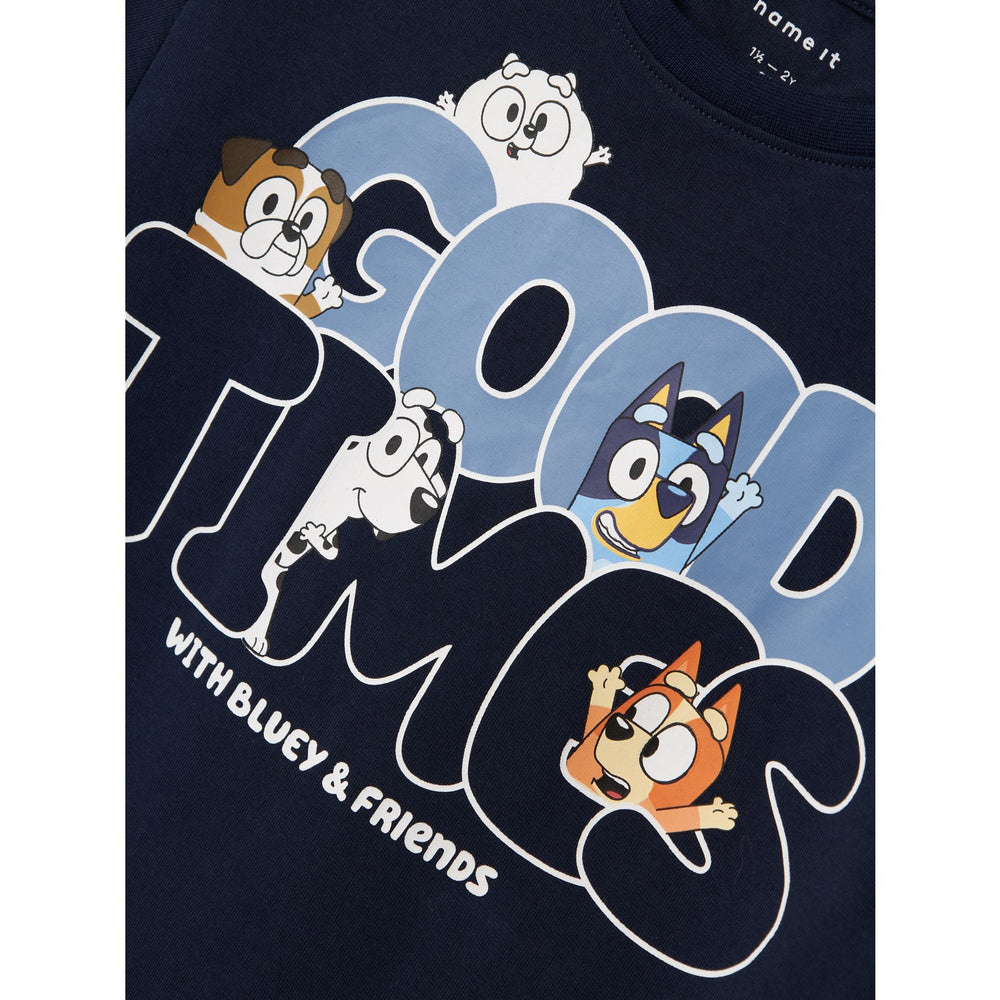 Uppdatera din lilla äventyrarens klädkollektion med ”Name It Navy Blazer Niels Bluey Regular Blouse”. Denna stilrena blus är inte bara en fröjd för ögat utan också oerhört bekväm tack vare sitt material i jersey, som är känt för sin lätthet, stretchighet och mjuka yta. Det gör att ditt barn kan röra sig fritt och obehindrat, vilket är essentiellt för lekfulla dagar. Designen kännetecknas av en klassisk rund hals och långa ärmar som gör den idealisk för både kyla och värme. Med en charmig gummitryck av "Bluey", den äventyrslystna Blue Heeler-valpen känd från tv, blir blusen snabbt en favorit. Dess normala passform ser till att kläderna sitter väl utan att begränsa ditt barns aktiviteter. Färgschemat i navy blazer med inslag av karaktärsdesign gör denna blus till en mångsidig del av varje barns garderob, lätt att matcha med diverse underdelar. Tålig i sin konstruktion, är blusen även lätt att sköta om, bara håll den borta från eld för långvarig användning. Ett perfekt val för både vardagslek och mer speciella tillfällen där en liten extra stil behövs. Låt ditt barn uppleva komforten och glädjen med "Name It Navy Blazer Niels Bluey Regular Blouse".