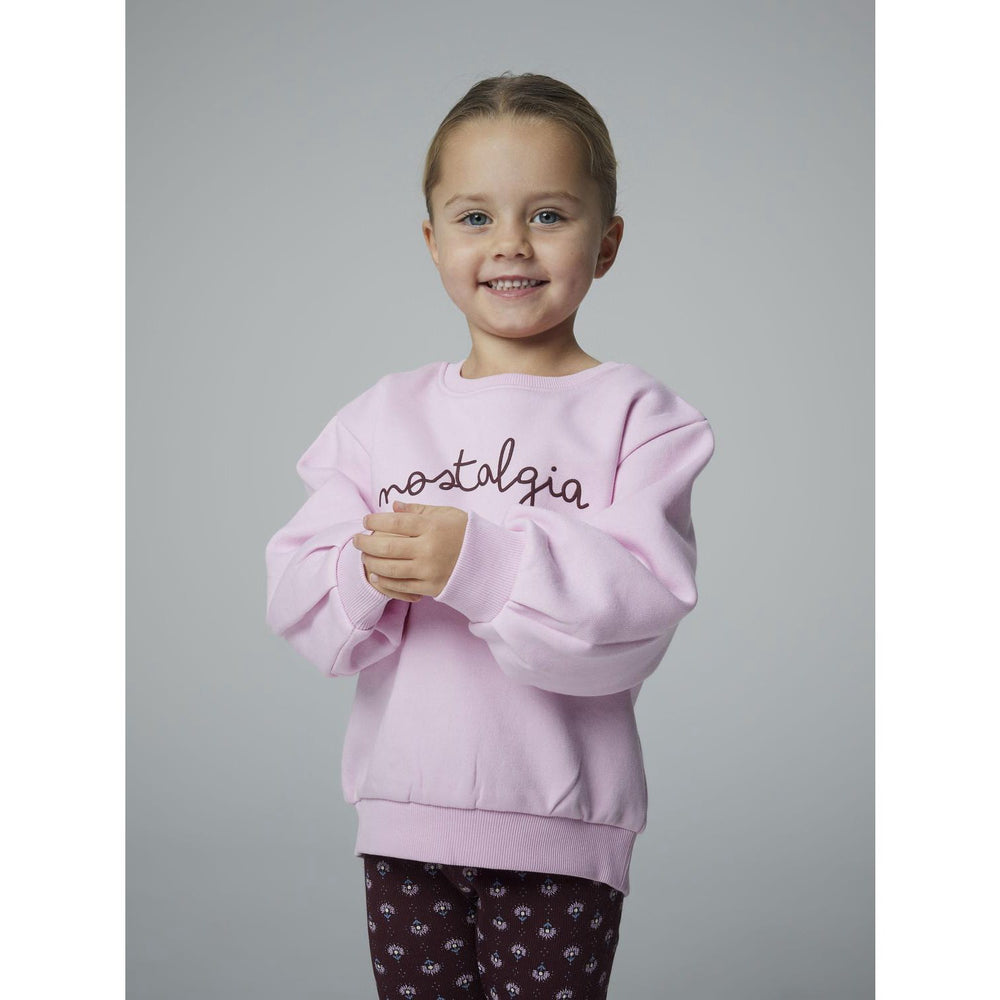 Tröjan är designad i en neutral färg med ett diskret och barnvänligt pigmenttryck, vilket gör den lätt att matcha med annan barnkläder i garderoben. Den borstade svettduken med mjuk insida skänker en extra mjuk känsla, vilket är idealiskt under lek och äventyr. Tröjans normala passform och det mjuka materialet gör den till en favorit för alla tillfällen, från skola till fritidsaktiviteter.