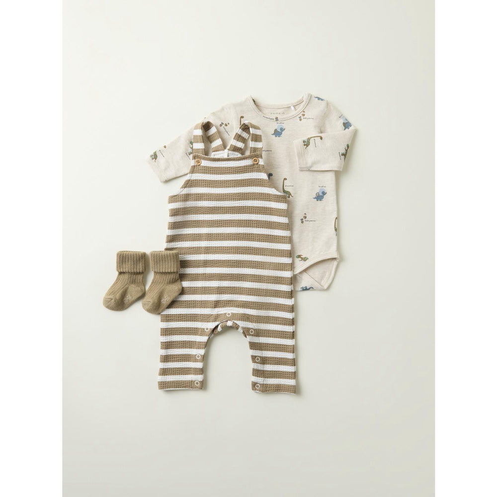 Uppdatera din lilla äventyrares garderob med Name It Peyote Melange Dinos Body, en charmig bodysuit som kombinerar stil med komfort. Tillverkad i jersey, ett material känt för sin lätthet och stretch, erbjuder denna bodysuit en mjuk kontakt mot huden samt utmärkt rörelsefrihet, vilket gör den idealisk för aktiva barn. Den har en rund hals, långa ärmar och praktisk knäppning med tryckknappar för enkel på- och avklädning. Den lekfulla dinosauriemönstrade designen i lugna färger lägger till en rolig touch och gör den till en favorit i varje barns garderob. Perfekt för daglig lek och utforskning, denna bodysuit garanterar både stil och bekvämlighet.