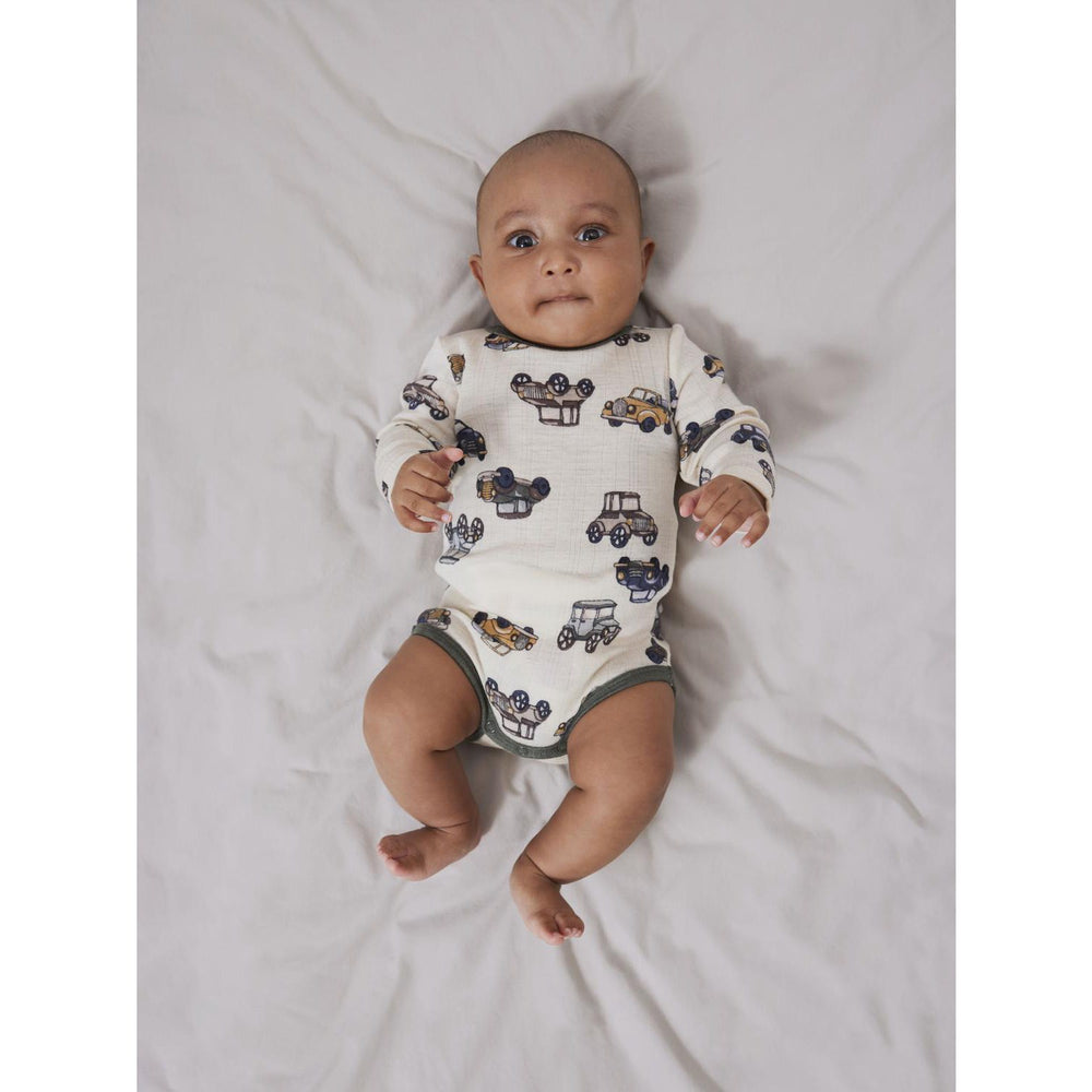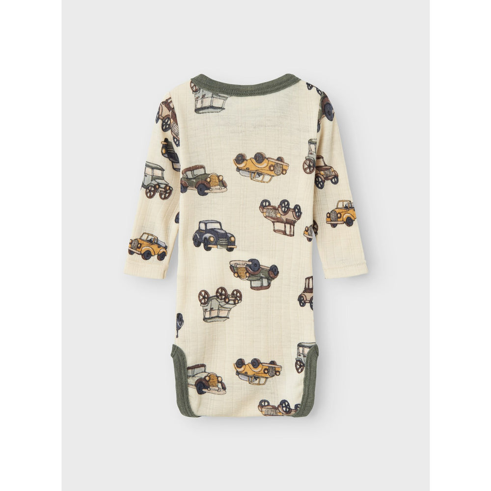 Gör vardagen lite mjukare och mer stilfull för din lille med Name It Snow White Wang Ull Needle Body Noos. Tillverkad i behaglig ull garanterar denna bodysuit värme och komfort under kyligare dagar. Den unika needle drop-tekniken ger ett charmigt och distinkt mönster som gör varje plagg unikt. Designen inkluderar en praktisk o-ringning och långa ärmar som skyddar mot kalla vindar, samt enkel knäppning med tryckknappar för snabb och smidig ombytning. Med en fängslande mönstring som upprepas över hela plagget, är denna body inte bara funktionell utan också lekfullt attraktiv. Perfekt för allt från lekstunder i parken till avkopplande dagar hemma. Stängning: Tryck på knappen Material: 100% merinoull Material och skötsel: Max krympning 8%. Använd endast silkes- eller ulltvättmedel Tvättråd: Maximal tvättemperatur 30°C - skonsam process
