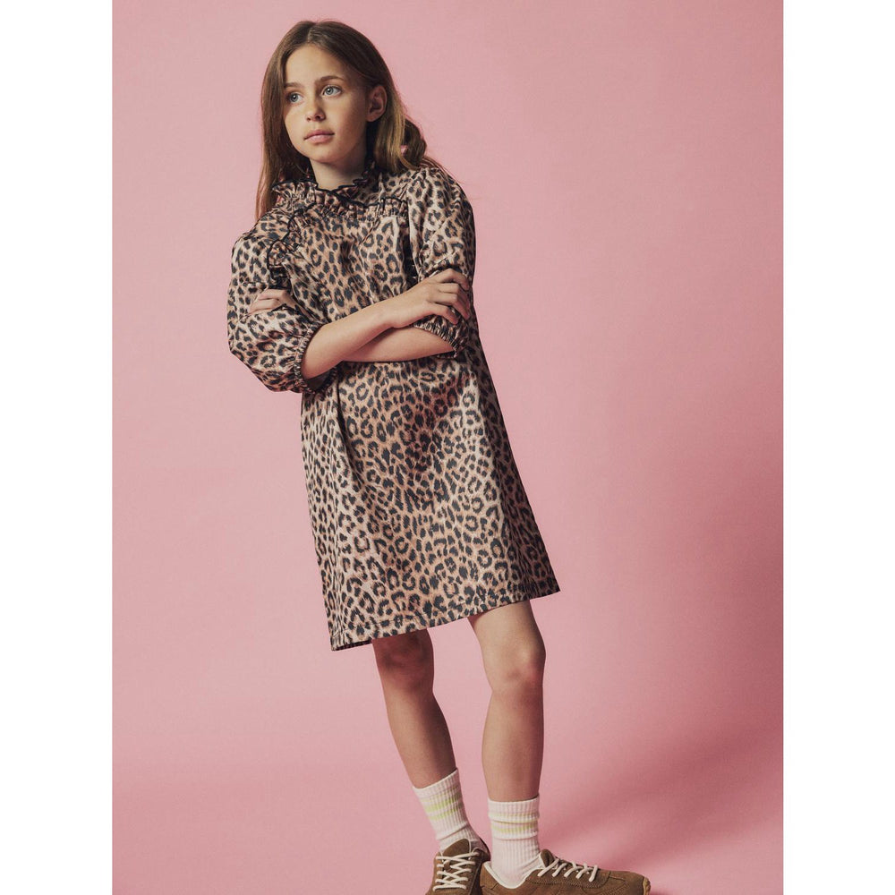 Klänningen är framställd i polyester, vilket inte bara bidrar till dess hållbarhet utan också gör den lättskött och resistent mot slitage. Passformen är normal, vilket ger tillräckligt med rörelsefrihet för lekfulla dagar. Det repetitiva mönstret över hela klänningen tillför en lekfull twist som garanterat kommer att göra den till en favorit i varje barns garderob.