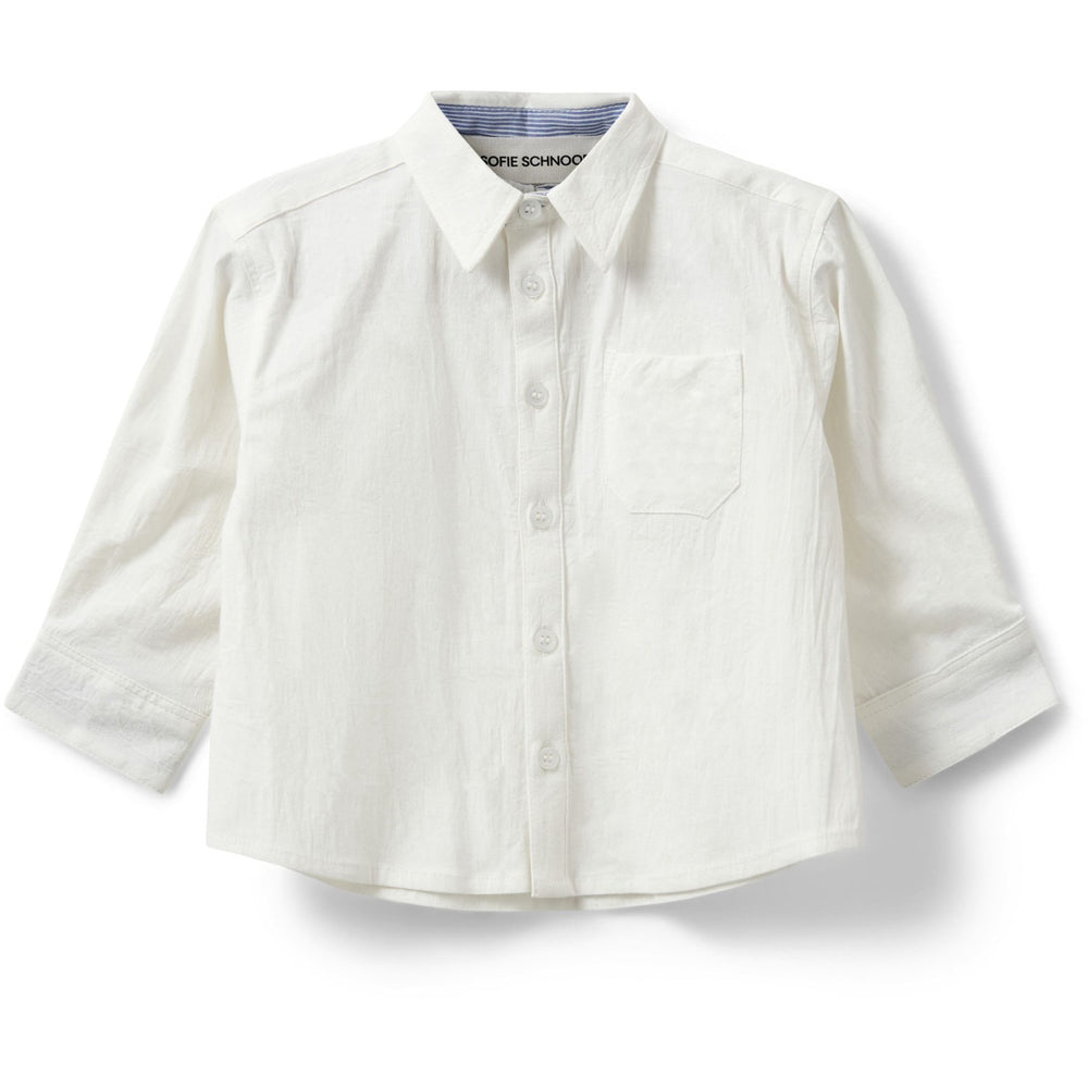 Den här underbara Sofie Schnoor-skjortan i lysande snövitt är en dröm för alla stilmedvetna små trendsättare. Designen är både tidlös och modern, med en smart, enkel ficka och en klassisk krage som ger en touch av sofistikering. Den här skjortan är perfekt för alla tillfällen och kommer att få ditt barn att se både charmig och elegant ut, oavsett om det är för familjefesten eller en dag på dagis.