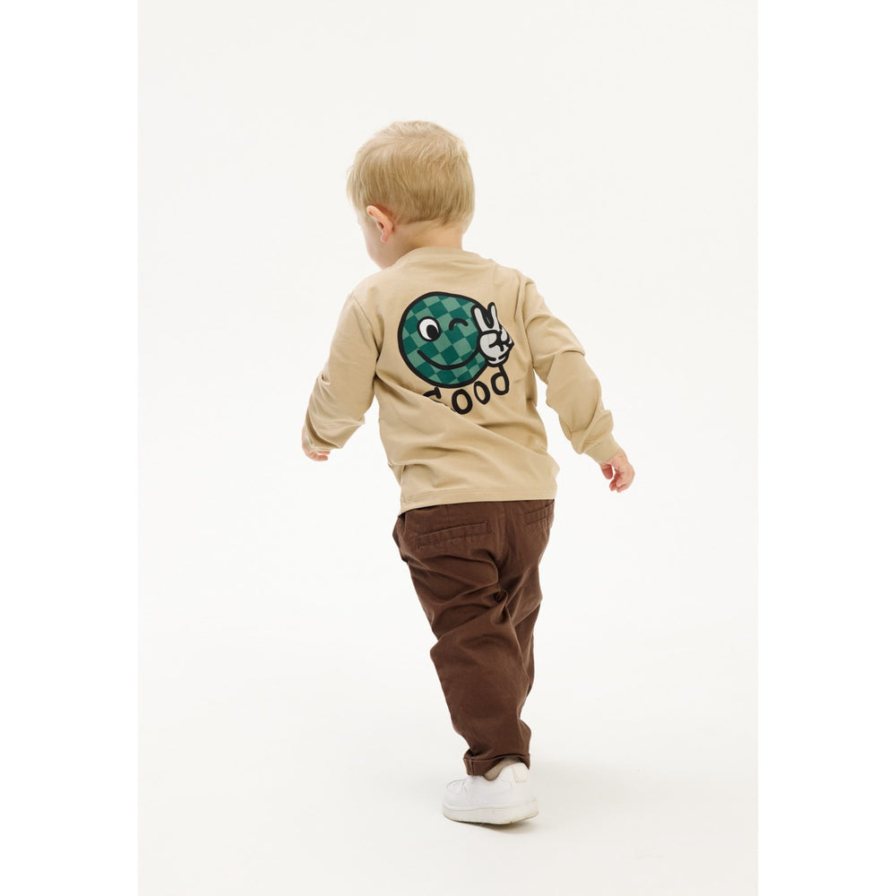Upptäck den charmiga tröjan från THE NEW Siblings, designad för att förgylla barnens vardag med stil och komfort. Framsidan pryds av ett glittrande smileytryck ackompanjerat av ordet "Good", medan baksidan visar en större version av samma symbol. Denna tröja är inte bara visuellt tilltalande utan också praktisk med sina fina ribbade kanter som erbjuder utmärkt passform.