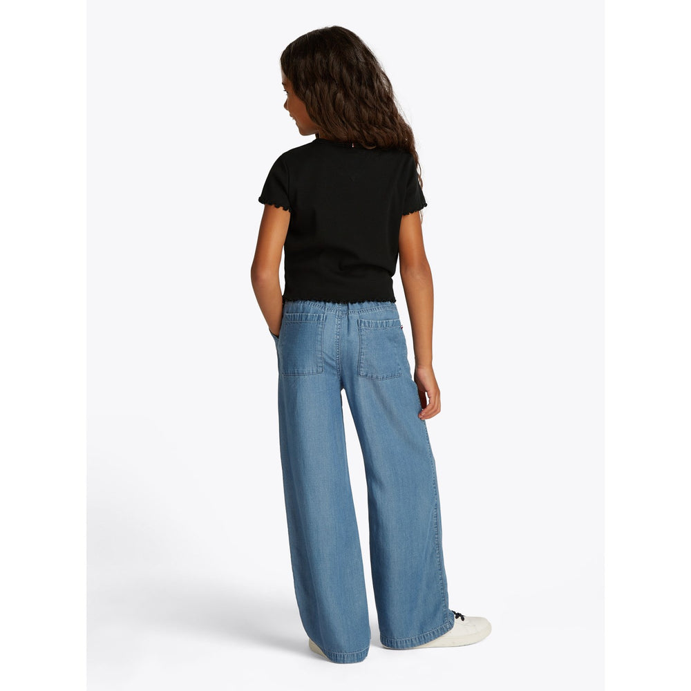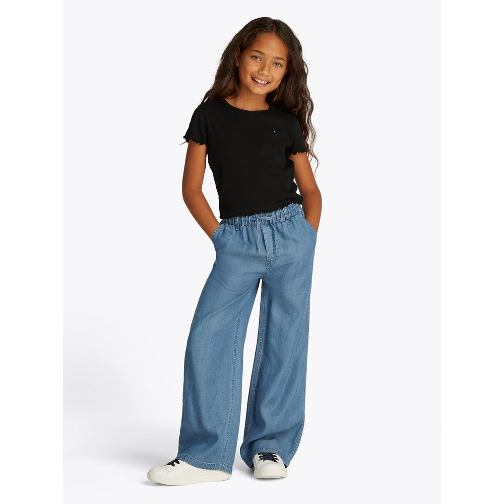 Låt ditt barn uppleva klassisk elegans med Tommy Hilfiger Black Essential Rib Topp SS. Denna T-shirt är tillverkad i mjuk ribbad bomull, vilket gör den både bekväm och hållbar för dagligt bruk. Med sin snygga svarta färg och diskreta logotyp blir den en perfekt bas i alla barns garderober. Dess anpassade passform och flexibla material garanterar en bekväm känsla under alla aktiviteter, förenande stil med funktionalitet. Idealisk för allt från skola till lekplatser.