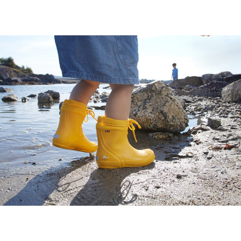 Upplev glädjen med VIKING Sun/Yellow Alv Indie gummistövlar, perfekta för små äventyrare. Tillverkade i slitstarkt material med en solgul färg och lekfulla mönster, vilket gör dem till en favorit i regnigt väder. Dessa stövlar är inte bara stiliga utan också bekväma och funktionella med en optimal passform för växande fötter. Lätta att rengöra, vilka ger barnet möjlighet att utforska världen med torra och glada fötter.