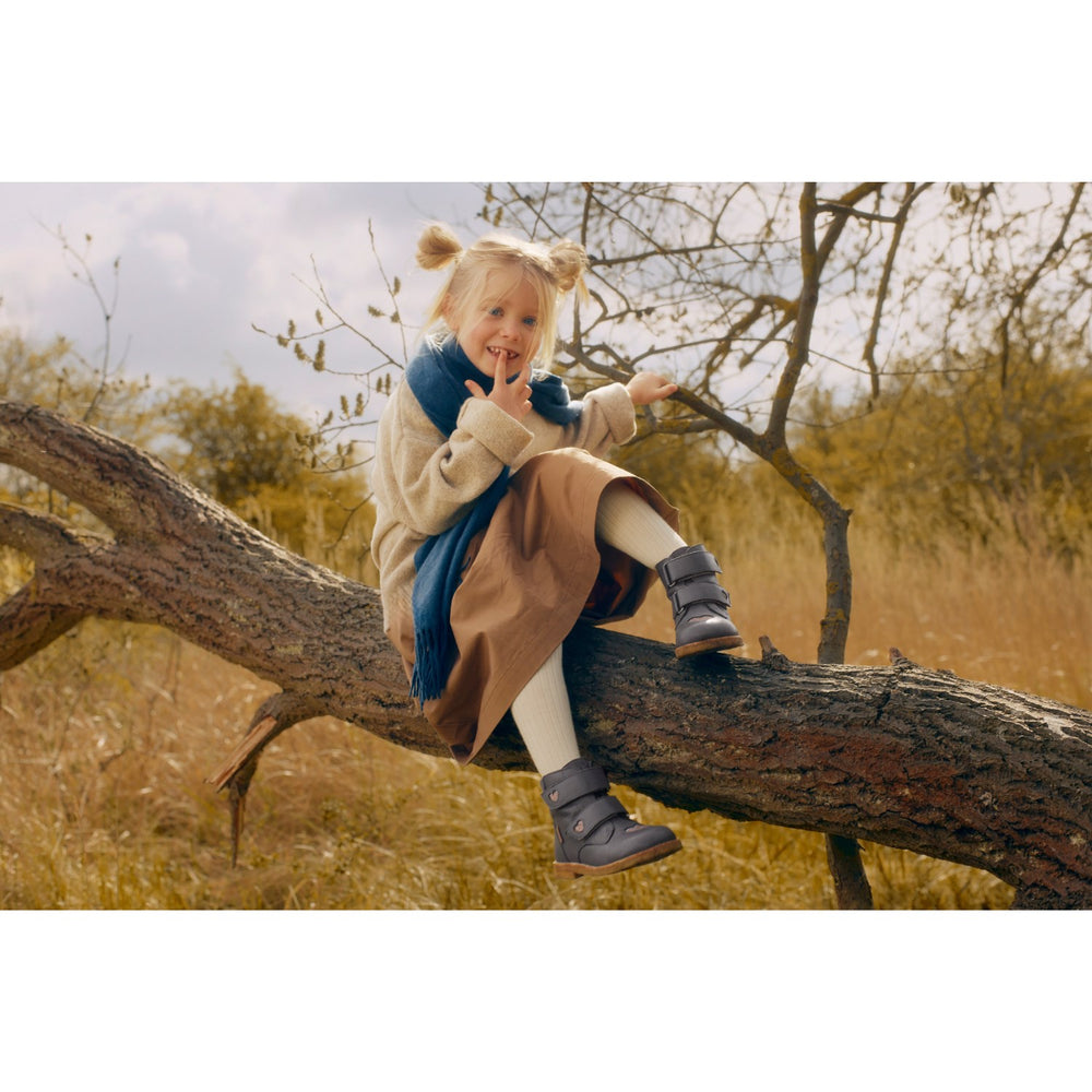 Extra stabilitet tillhandahålls av en fast hälkappa med en mjukt vadderad mockakrage, medan den vadderade innersulan erbjuder ytterligare komfort och stöd under lekfulla dagar. Varje par skor är designade i Danmark och handgjorda med omsorg i Portugal, vilket säkerställer en hög standard på både material och hantverk. För optimal passform, mät barnets fot före köp och lägg till en tillväxtmån på cirka 1-1,5 cm. Med dessa skor blir varje steg mot kyla och rusk ett steg i stil och komfort!
