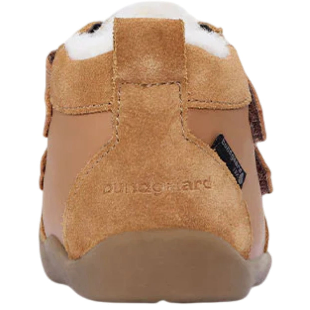 Upptäck Bundgaard Cognac Bloom - den perfekta vinterstöveln för barn! Tillverkade av LWG-certifierat läder och mocka, är dessa barfotaskor inte bara miljövänliga utan också designade för att maximera barnets fotutveckling. Med ett vattentätt TEX-membran håller Bloom stövlarna barnens fötter torra och varma, tack vare fodret av mjuk ull. Dess unika design med bred framfot ger tårna utrymme att röra sig naturligt, medan den snäva hälkappan garanterar att stöveln sitter säkert. Bloom kombinerar komfort och stil med sin charmiga utseende och detaljer i läder och mocka. Den justerbara kardborrestängningen och inbyggda flexzoner i sulan säkerställer en flexibel passform som anpassar sig efter barnets fot, vilket gör dessa stövlar idealiska för allt från krypande till de första stegen. En platt sula utan häldropp främjar en naturlig fotposition, vilket gör Bloom till mer än bara ett par skor - de är en investering i ditt barns hälsa och komfort. Utrusta dina små äventyrare med Bloom för att ge dem det ultimata stödet de behöver för att utforska världen!