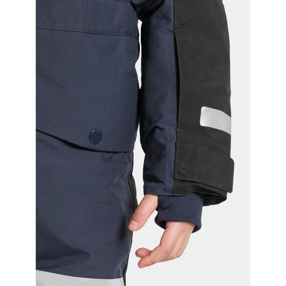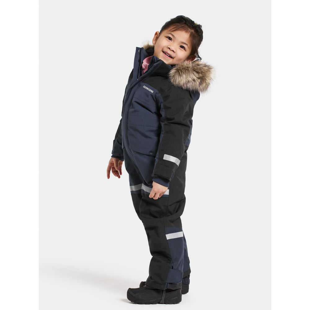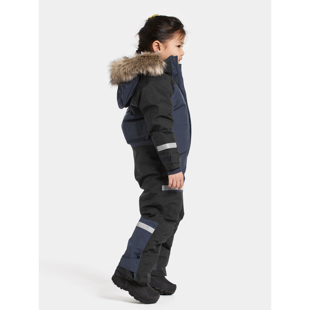 Upplev värmen och skyddet med Didriksons Navy Bjärven Kds Cover 4, en välutrustad vinteroverall designad för barnens vinteräventyr. Denna overall är gjord för att hålla ditt barn torrt och bekvämt tack vare dess ergonomiska snitt och smarta tygmappning. Den justerbara och avtagbara huvan med eller utan syntetisk päls, samt de justerbara bensluten med snölås och silikonfotremmar, ger optimal anpassning och skydd mot snö och kyla.