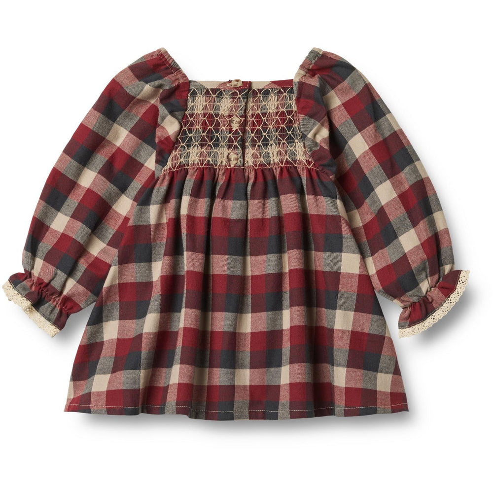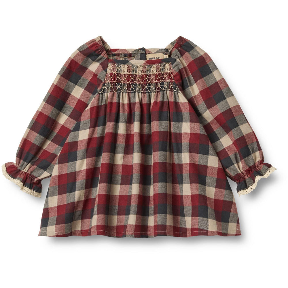 Wheat Red Blue Check Klänning L/S Lace Bella
