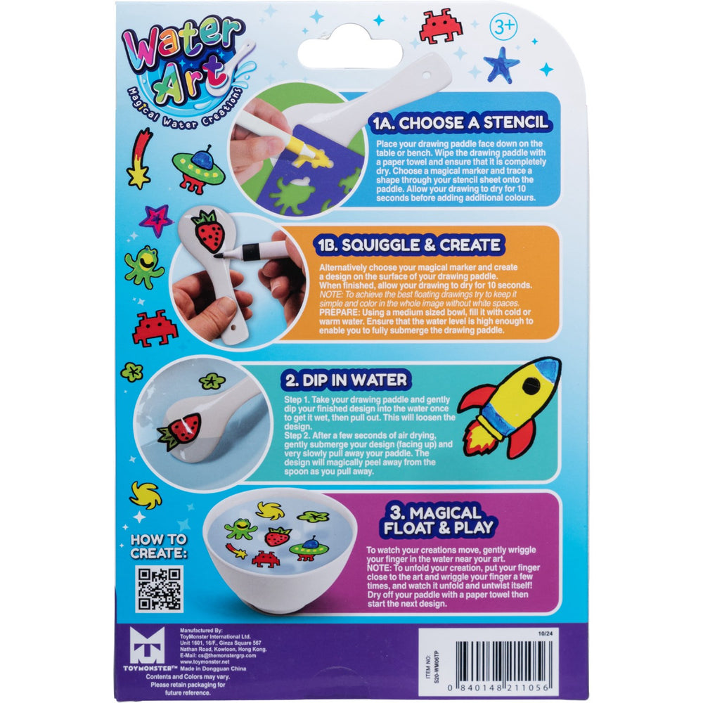 - Rita dina skapelser på baksidan av den medföljande skeden med de medföljande speciella Water Art-pennorna