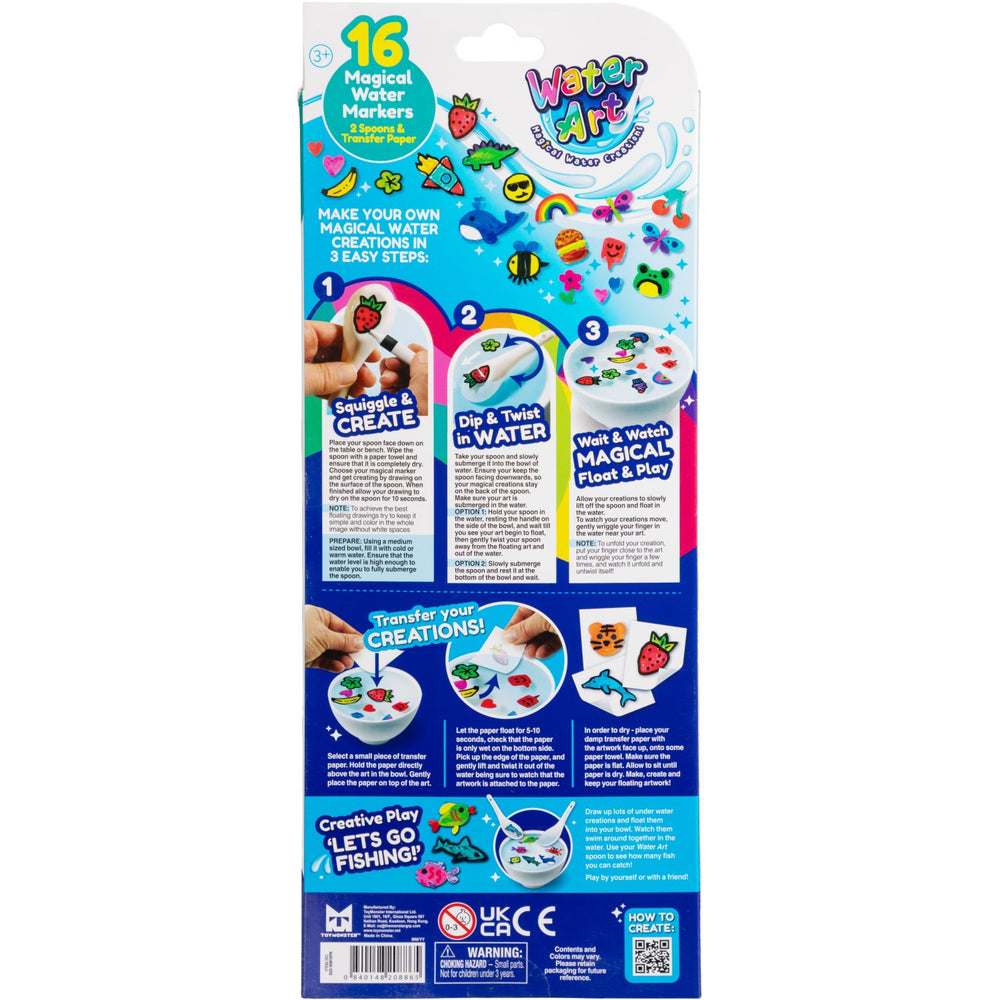 Ge liv åt barnens kreativitet med vårt spännande Water Art-set! Detta set är perfekt designat för att inspirera unga konstnärer och samtidigt säkerställa en trygg lek. Med 16 färgglada tuschpennor och två keramiska skedar kan barnen utforska sin konstnärliga sida genom att rita direkt på skedarnas baksida. Efter att de har ritat sina motiv, kan de enkelt doppa skedarna i vatten för att se hur teckningarna mystiskt flyter iväg från ytan.