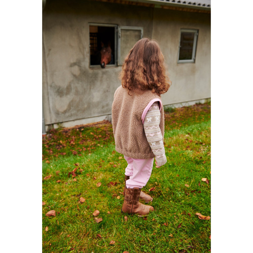 Denna charmiga teddyjacka från Copenhagen Colors, i en naturlig och rosa kombination, är den perfekta kompanjonen för ditt barn under kyligare dagar. Jackan är utrustad med avtagbara ärmar genom praktiska dragkedjor, vilket gör den anpassningsbar till olika väderförhållanden. Den mjuka fleecen på insidan garanterar värme och komfort, medan den främre dragkedjan förenklar på- och avtagningen. Denna mångsidiga jacka, i en lekfull men stilren design, erbjuder både funktionalitet och stil, och är ett måste i barnets höst- och vintergarderob.