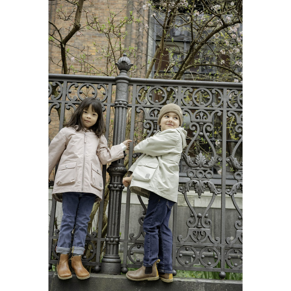 Övergångsparkas från MarMar i färgen White Sage, perfekt för det oförutsägbara danska vädret. Den här smarta jackan är designad med rymliga fickor och en praktisk avtagbar huva så att ditt barn kan anpassa sig efter vädrets nycker. För ökad värme under kalla dagar kan jackan kombineras med vår Termo Ride-jacka eller väst. Den är tillverkad av 100 % återvunnet material och är både vind- och vattentät med ett vattenpelartryck på 8000 mm och en andningsförmåga på 5000 gr/m2/24h. Jackan har tejpade sömmar, en hållbar, fluorfri finish och YKK-certifierade dragkedjor som säkerställer hållbarhet och kvalitet.