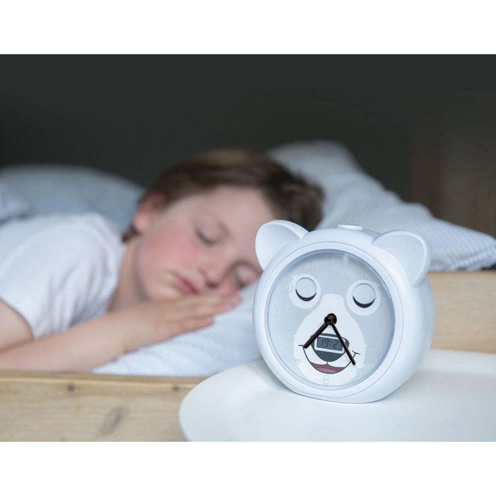 BOBBY är en charmig sömntränare från Zazu, designad för att förenkla sänggåendet för de allra minsta. Med sin funktion att visa både digital och analog tid lär den barnen att förstå klockan på ett pedagogiskt vis. Ögonen på BOBBY stängs när det är dags för barnet att sova och öppnar sig igen vid rätt tidpunkt för uppvaknande, vilket gör sömnrytmen både rolig och lärorik.