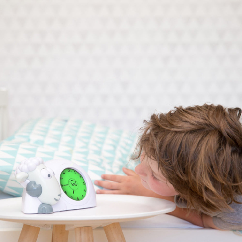 Är morgontimmarna för stressiga hemma? Zazu Grey Sam The Sheep Sömntränare hjälper till! Den här nyskapande enheten utbildar barnen på ett lekfullt sätt om när det är dags att sova och när det är tid att kliva upp. Med en nattlampa som förändras som ett trafikljus från röd till grön, ger Sam en visuell indikation om det är natt, nära morgon eller dags att vakna. Sam stängda ögon vid sängdags och öppna på morgonen gör rutinerna både roliga och pedagogiska för de små.
