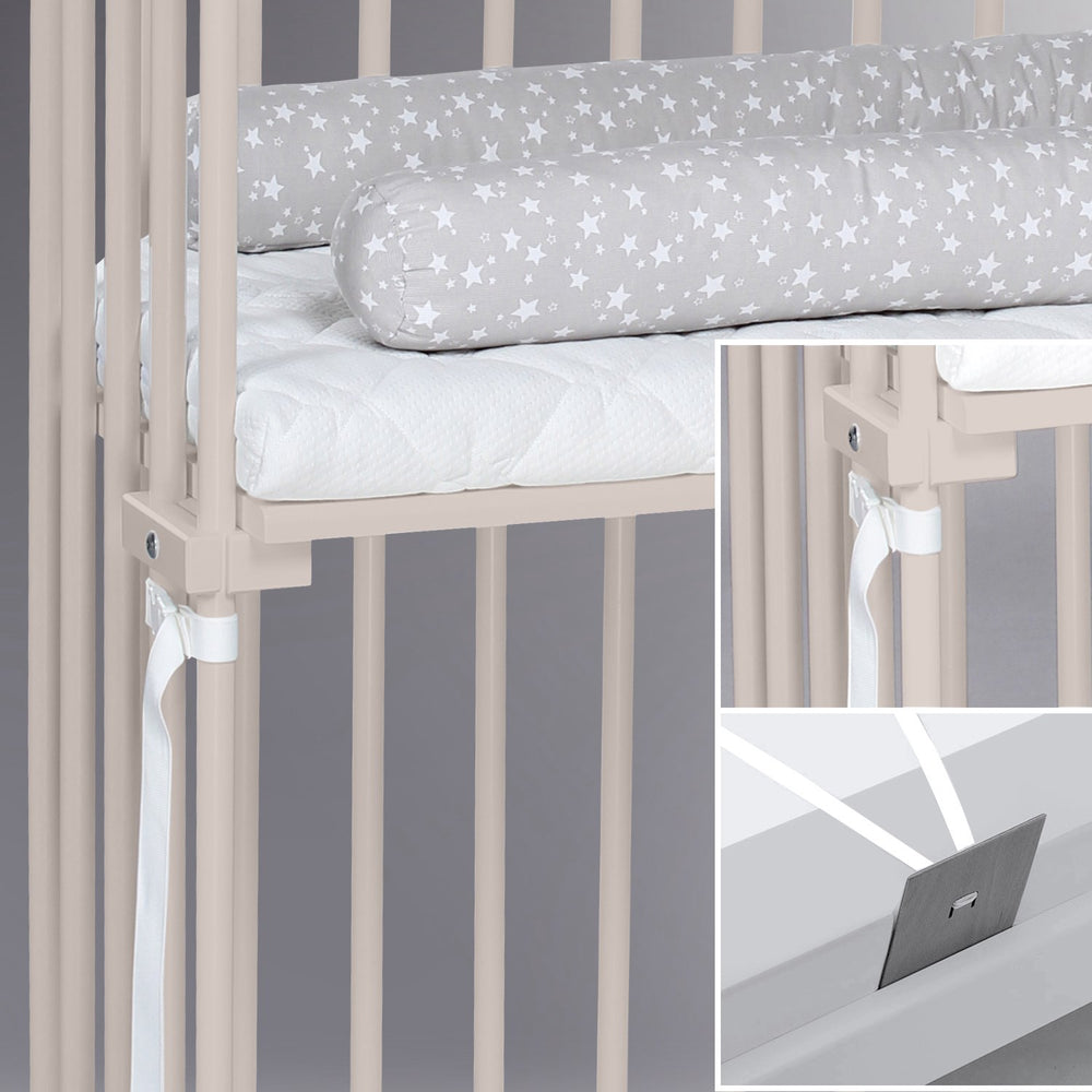Patenterad, steglös höjdjustering - liggyttan kan justeras exakt till vilken sänghöjd som helst, inget steg och inget mellanrum