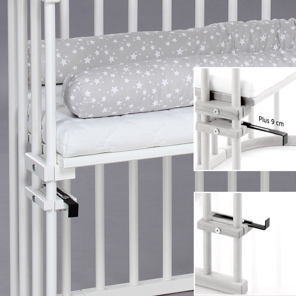 - Med tillvalet fästsats inklusive rem kan babybay® Maxi även fästas på sängar utan ram