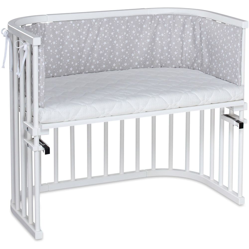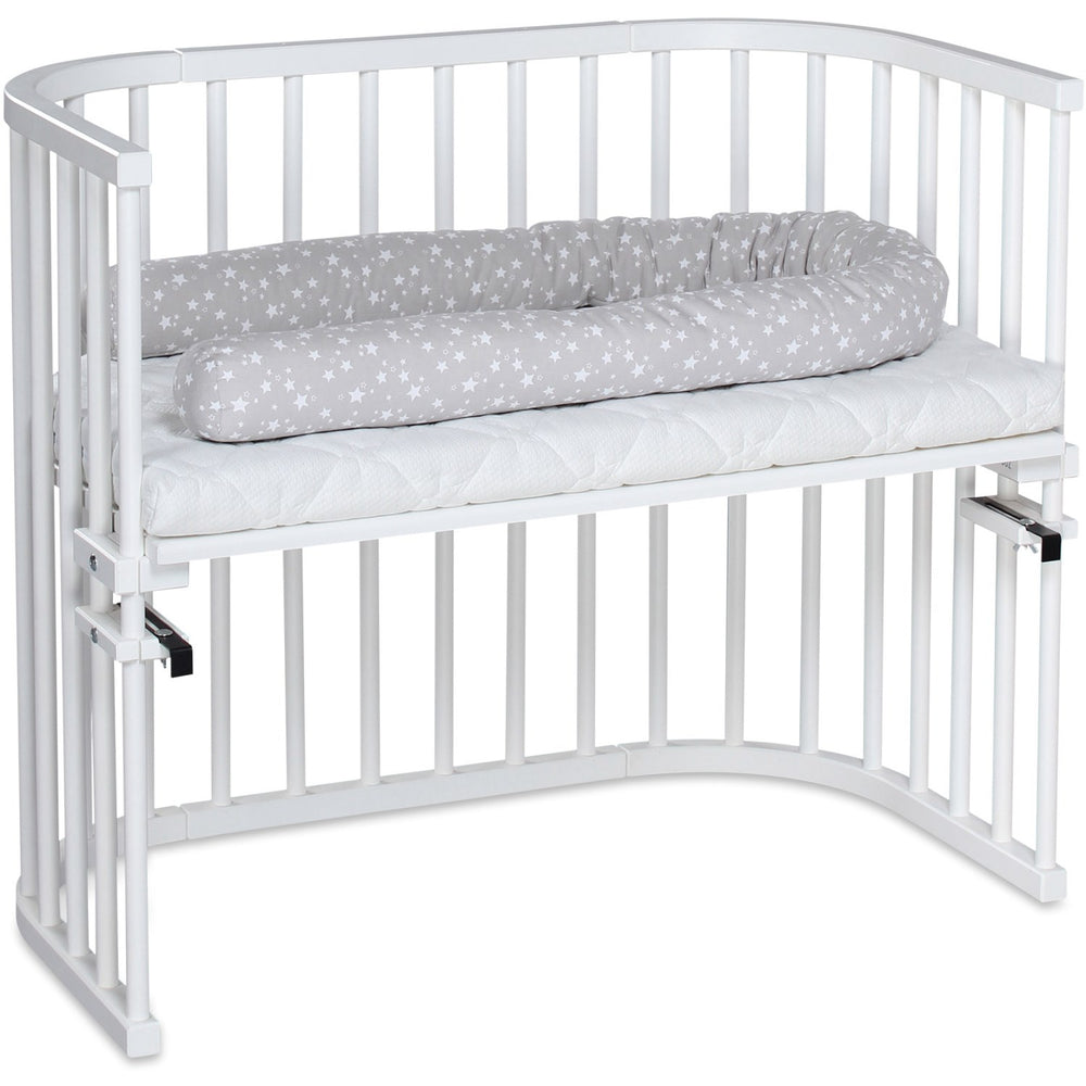 Låt oss presentera babybay® Maxi, den perfekta sovlösningen för ditt barn. Den här extra stora co-sleepern är särskilt designad för att ge gott om plats, vilket gör den idealisk för familjer med tvillingar eller dig som önskar extra utrymme för barnet. babybay® Maxi är unik med sin patenterade, steglöst variabla höjdjustering, vilket garanterar att sängen alltid kan justeras till exakt rätt höjd i förhållande till föräldrarnas säng, utan några glipor.