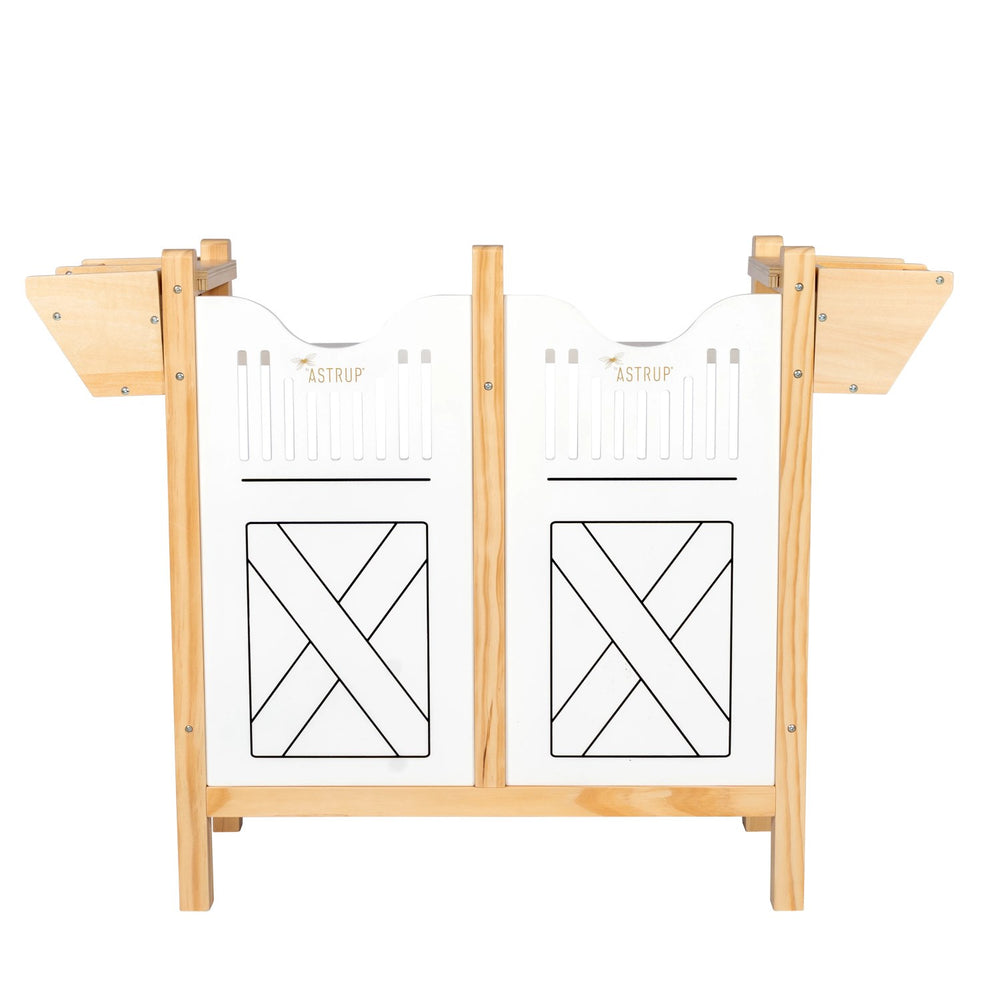 Utforska glädjen med en organiserad lekmiljö med byAstrup Hästbox för käpphästar – en perfekt lösning för att hålla upp till fyra käpphästar välorganiserade och säkert förvarade. Den här praktiska hästboxen är skapad för att förenkla livet för unga käpphästfans, och erbjuder gott om utrymme samt tillbehör som två fodertråg för att simulera en riktig hästvård.