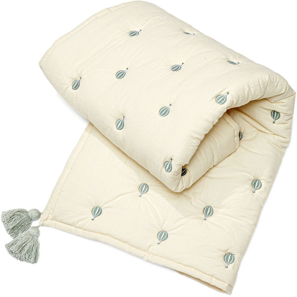 Denna vackra broderade filt från Cam Cam Copenhagen är den perfekta kombinationen av stil och bekvämlighet för ditt barns rum. Med sitt noga utvalda material av mjuk ekologisk bomull och en unik bomullscrepe-struktur, är den både hållbar och försiktig mot barnets känsliga hud. Filten är tjockt vadderad vilket gör den idealisk för användning på golvet under lekstunder såväl som en behaglig överkast när det är dags att vila.