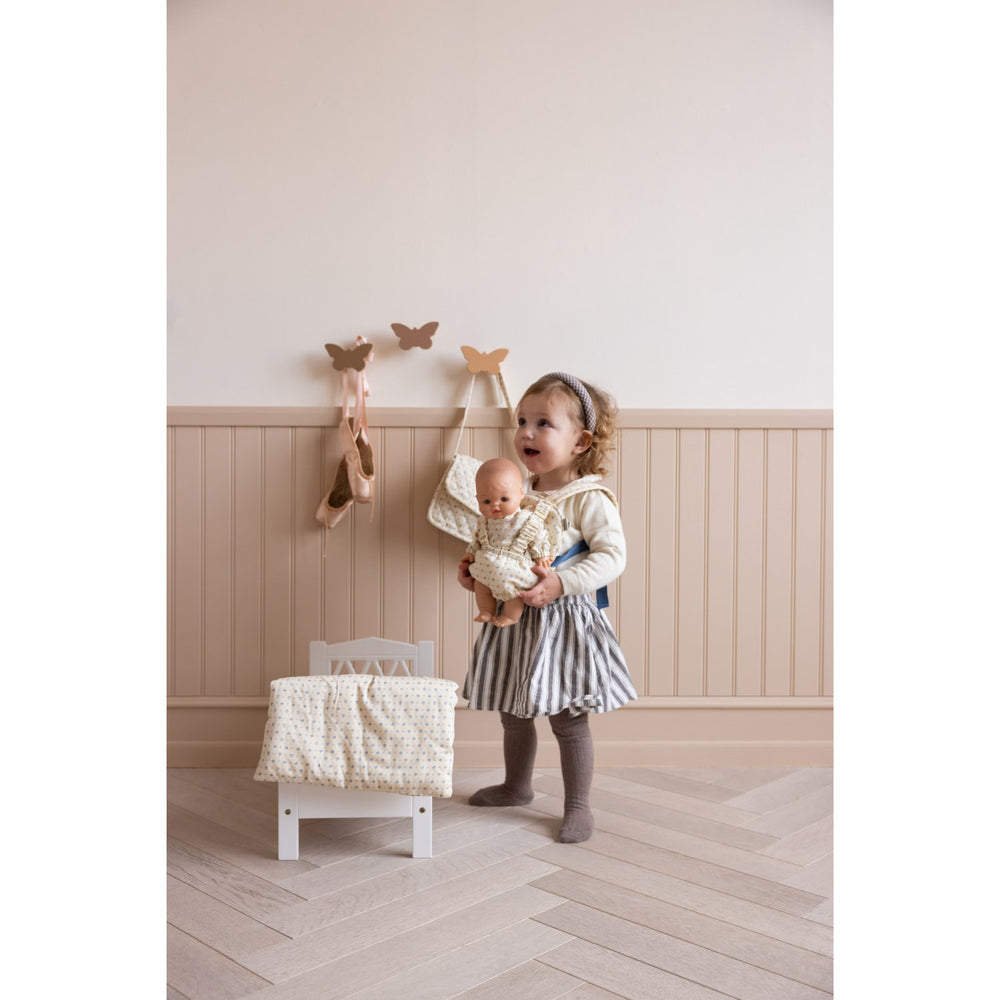 Upptäck glädjen med Cam Cam Copenhagen Capri dockbärsele – en fantasifull och säker leksak som låter ditt barn ta med sig sin favoritdocka överallt! Denna charmiga dockbärare är designad för att föra in en känsla av omsorg och efterlikna de vuxnas vardag på ett lekfullt sätt. Med justerbara remmar och kardborreband runt magen kan din lilla enkelt anpassa bärselen för en bekväm passform, vilket gör den enkel att använda för barn.