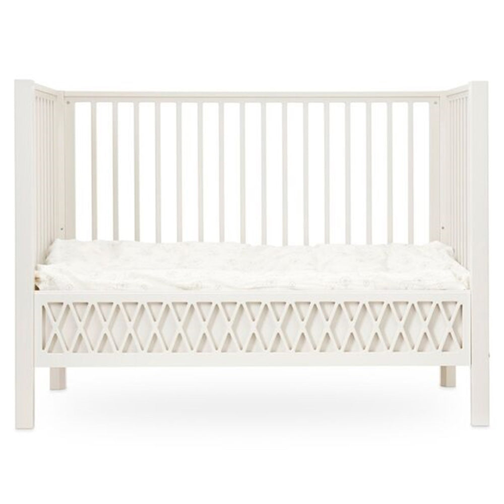 Flott sprinkelseng med Cam cam's klassiske Harlequin mønster i en flott råhvit. Sengen rommer flere kule features, og kan lett tilpasses barnets alders- og utviklingstrinn. Bunnen kan innstilles i 3 forskjellige høyder, og sidepanelet kan lett tas av med to barnesikrede trykknappper. Sengen er sikkerhetstestet i Danmark og godkjent (Test on evaporation of toxics on painted/lacquered surfaces).Vær oppmerksom på lengre leveringstid. Se en fin video av sengen og dens funksjoner fra Cam Cam like her.*** MERK! Det vil komme ekstra frakt på volum varer som må sendes på pall f. eks: Senger, Madrasser og større Møbler. Kontakt vår kundeservice for pris.