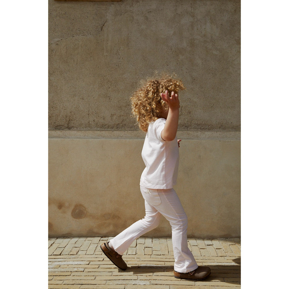 Ge din lilla äventyrare chansen att utforska världen med stil i dessa randiga trumpetbyxor från COPENHAGEN COLORS. Byxorna är skapade i 100% ekologisk bomull som inte bara ger en mjuk känsla mot huden men också säkerställer hållbarhet och enkel skötsel. Cream Stripe-designen med dekorativa rosetter lägger till en charmig touch, perfekt för allt från lekfulla eftermiddagar till familjesammankomster. Med deras bekväma passform och slitstarka material är dessa byxor ett utmärkt val för barn som är ständigt i rörelse.