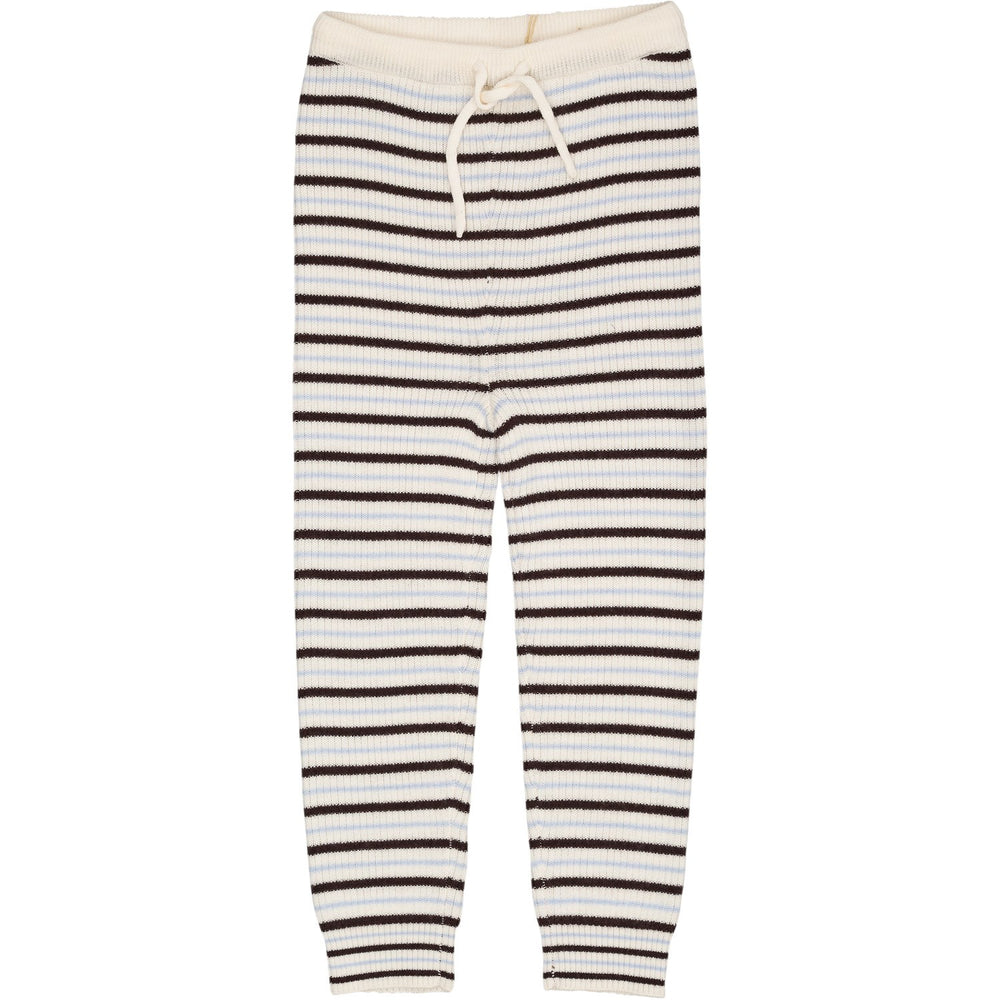 COPENHAGEN COLORS Cream/Dk.Brown/Dusty Blue Combi Merino Classic Rib Leggings W. Drawstrings