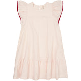 Denna charmiga klänning från Copenhagen Colors i Dusty Rose med krämiga ränder och Berry Seersucker-mönster är idealisk för sommarens alla festligheter. Med sin stilrena A-linjeform och dekorativa volanger samt små vingärmar med röda kontrastkanter, erbjuder den både stil och bekvämlighet. Tillverkad i 100% ekologisk bomull, GOTS-certifierad, garanterar den både miljövänlighet och hållbarhet, medan det luftiga seersucker-tyget håller ditt barn svalt och torrt genom att snabbt torka. Enkel att sköta; maskintvättas vid 40 grader och kan torktumlas på låg värme. En perfekt kombination av skönhet och funktion som underlättar vardagslivet.