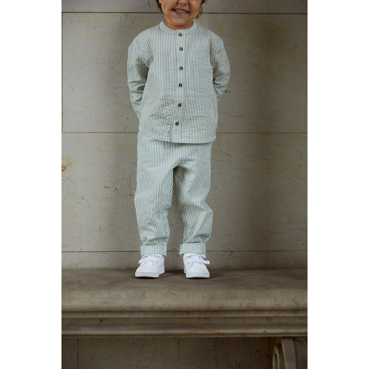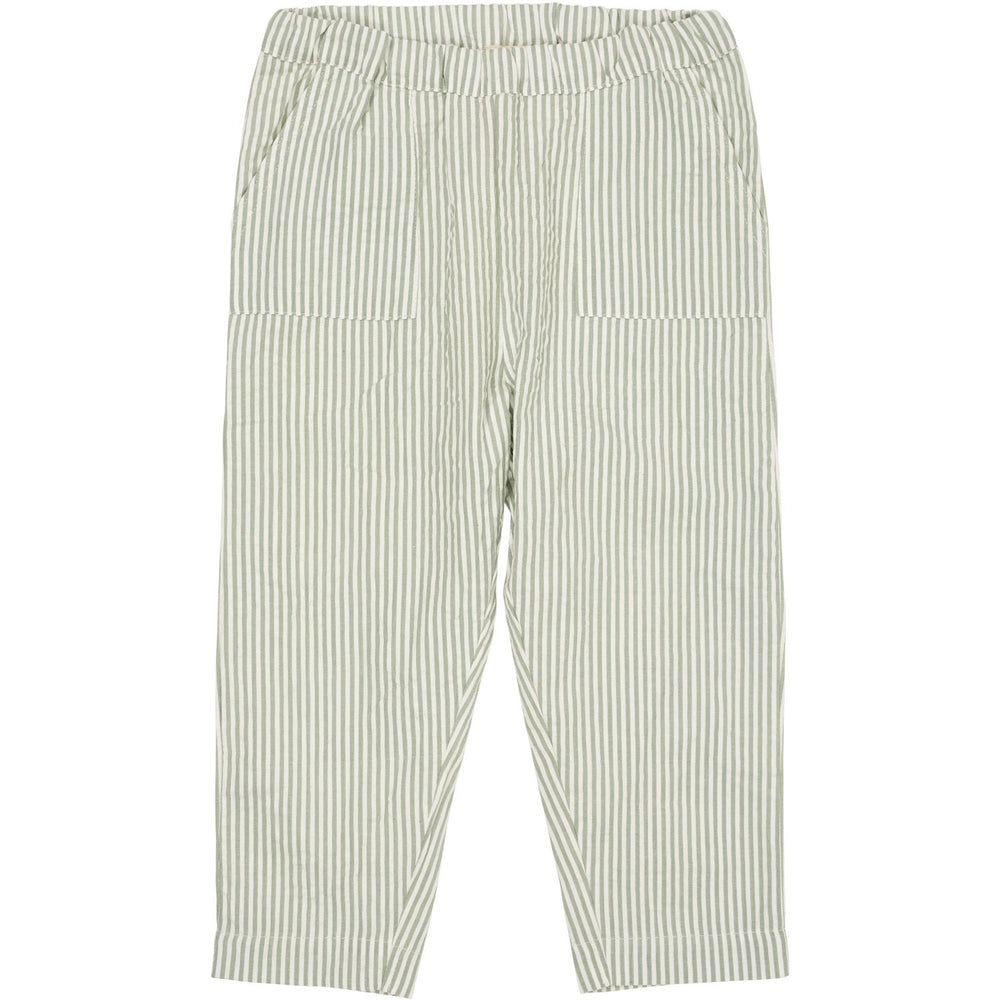 COPENHAGEN COLORS Green W Cream Stripe Seersucker Byxor