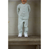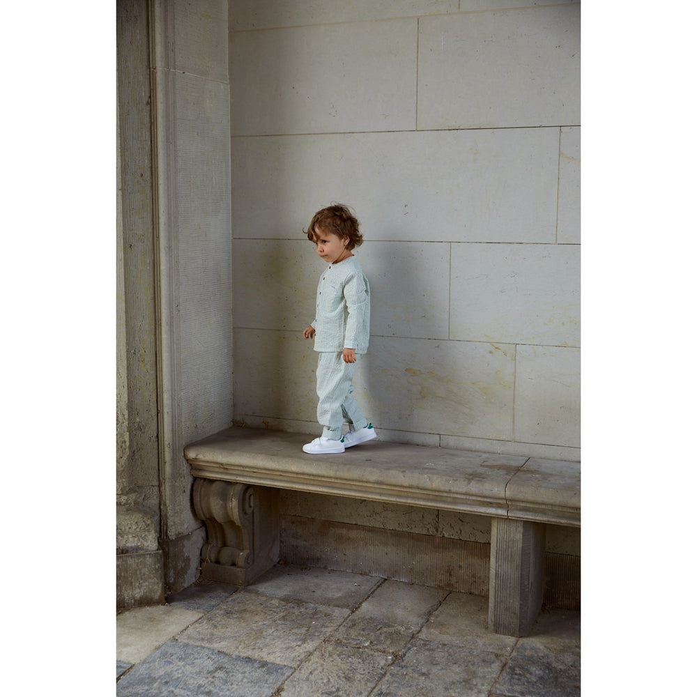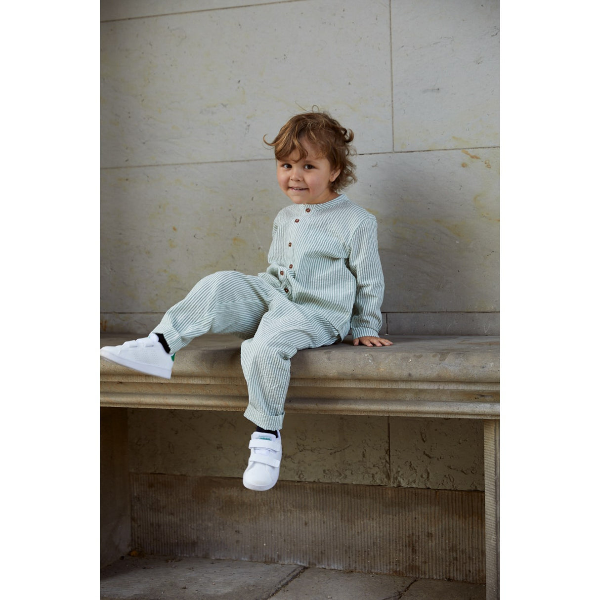 Upptäck våra bekväma och stilrena Copenhagen Colors seersucker-byxor i grönt med krämiga ränder. Tillverkade i 100% ekologisk bomull garanterar de både hållbarhet och mjukhet. Justerbart midjeband och unisex-passform gör dem idealiska för aktiva barn som rör sig fritt. Deras klassiska randmönster tillför en tidlös elegans, samtidigt som det GOTS-certifierade materialet säkrar miljövänlig produktion. Skötselråd inkluderar maskintvätt i 30 grader med liknande färger och utan torktumling. En perfekt kombination av mode och funktion som håller ditt barn bekvämt hela dagen!