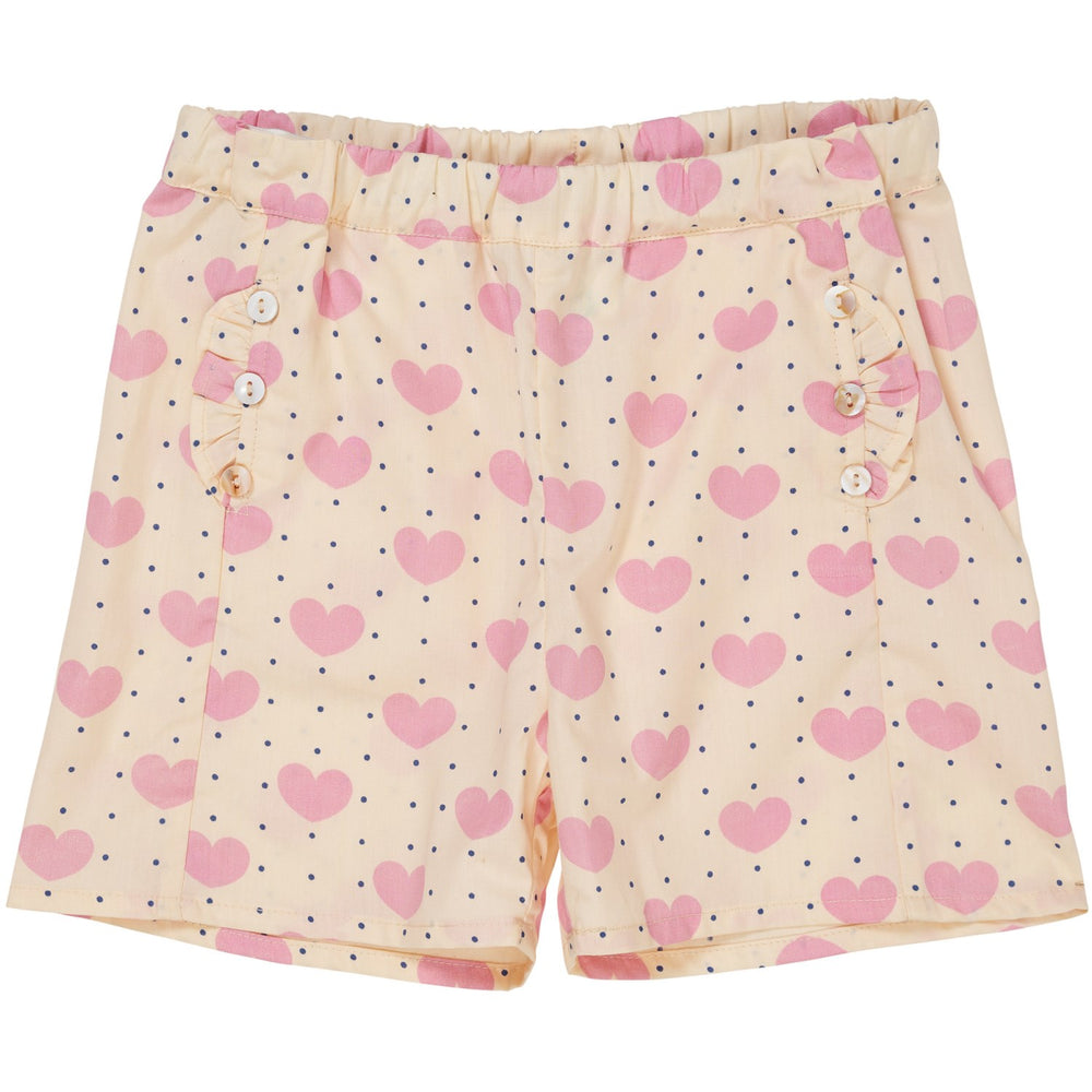 COPENHAGEN COLORS Heart Aop Heart & Dots Shorts med volangfickor