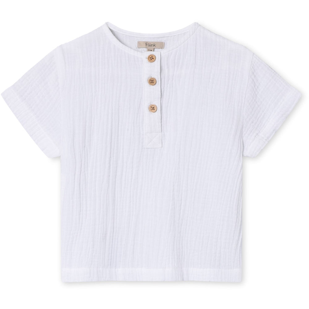 Kliv in i stil med Fliink Cloud Dancer Cha Cha Shirt! Den här charmiga skjortan, tillverkad i mjuk vävd muslin, har en luftig framsida i polostil med tre knappar, vilket gör den lätt att ta på sig. Designad med en avslappnad passform och korta ärmar, den är perfekt för lekdejter och parkäventyr. Dessutom är den tillverkad av 100 % bomull, vilket garanterar komfort hela dagen. Det är lätt som en plätt att ta hand om – det är bara att slänga den i tvätten på ett skonsamt program. Oavsett om det är en fotodag eller en familjeutflykt kommer ditt barn att se bedårande ut och må bra!