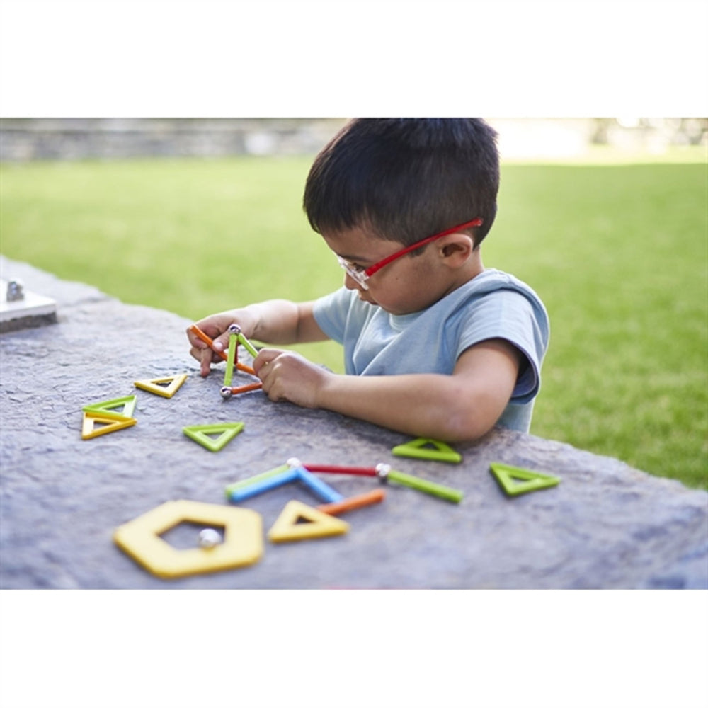 - 35 delar (magnetstång, magnetiska bollar och paneler i olika färger och former)